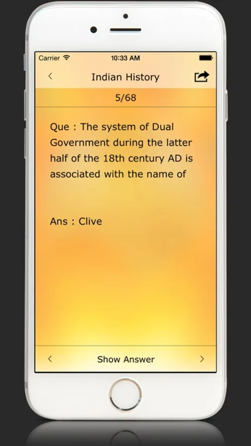 This app consider different categories of Indian general knowledge questions and also shows the answer.