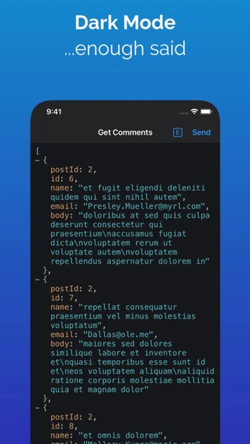 - Auto-formatted responses according to content-type, optimised for mobile.