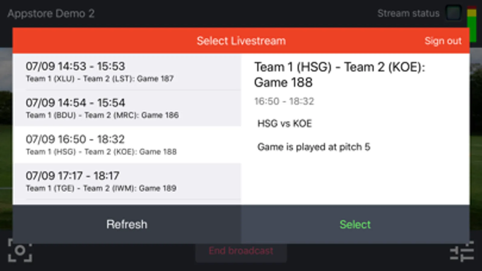 As soon as the team is activated, you set up the game to be broadcasted. Then log in to Solidsport Broadcast.