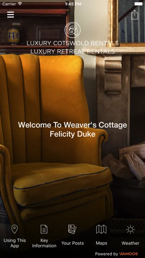 You can download and access our App once you have been given a booking reference by the team at Luxury Cotswold Rentals / Luxury Retreat Rentals; after which you will be able to access the following features:
