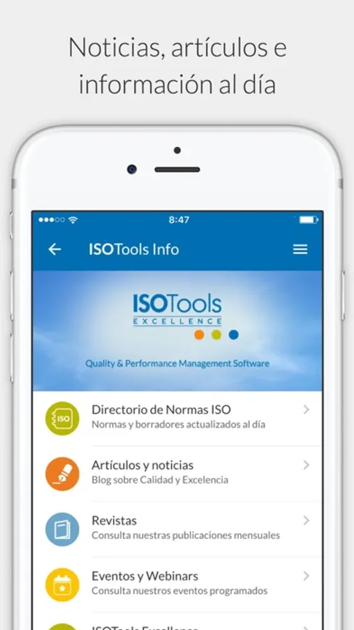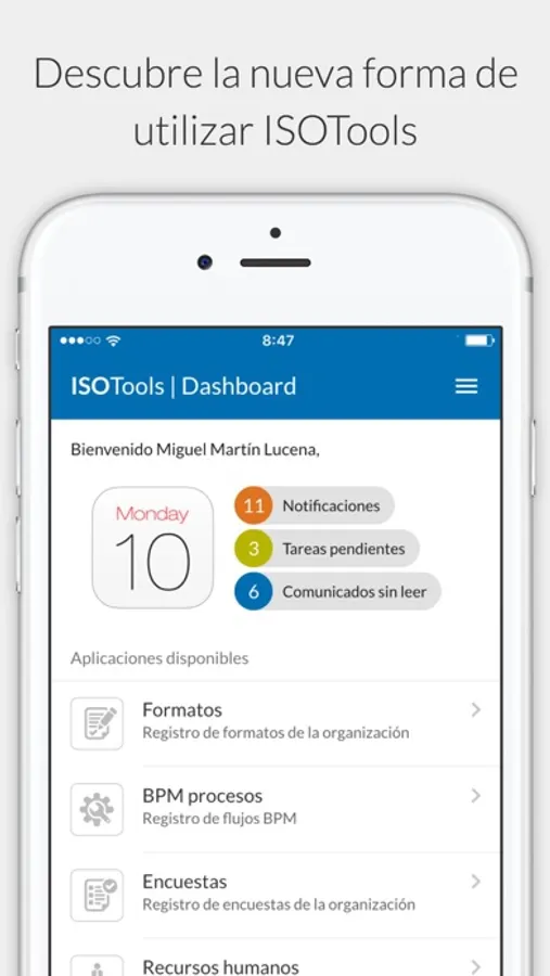 Una nueva forma de utilizar ISOTools. Hemos desarrollado una poderosa experiencia móvil, integrada con tu contenido y los datos alojados en nuestro software, por lo que podrás estar en todo momento conectado a lo que es más importante para ti y tu negocio