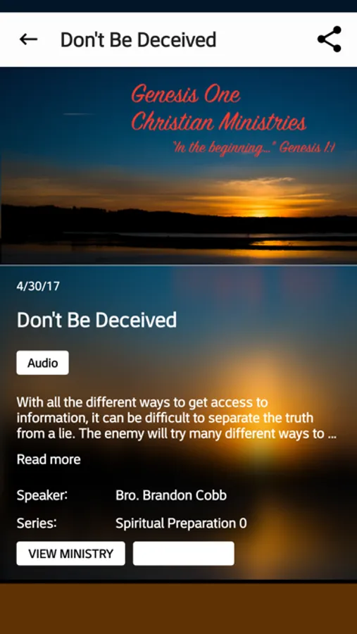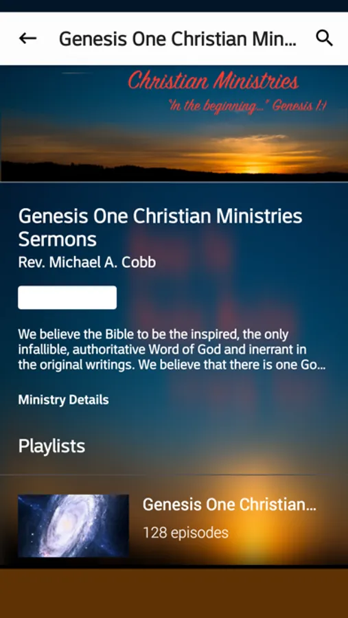GENESIS ONE CHRISTIAN MINISTRIES is a non-denominational, full-gospel Christian ministry devoted to spreading the uncompromised Word of God. We believe that Jesus Christ is the Son of the Living God, and that all scripture as given to man, was divinely inspired by the Holy Spirit.