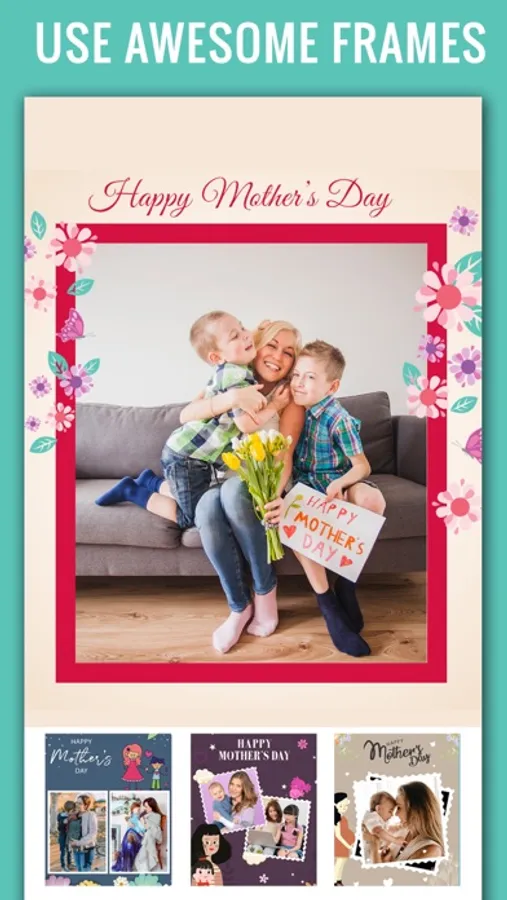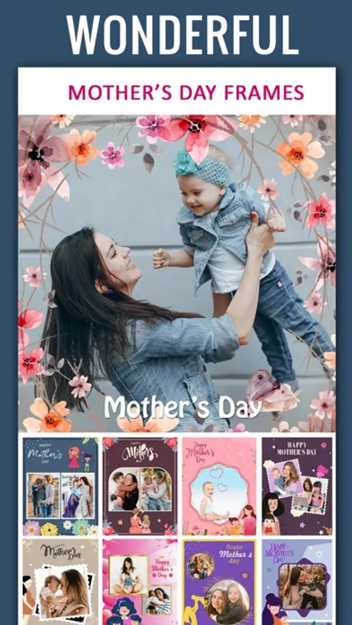 Mothers' Day Photo Frames is a collection of many lovely photo frames for you to decorating your lovely photos. It has the same function as the Love Photo Frames, Birthday Photo Frames and other apps.