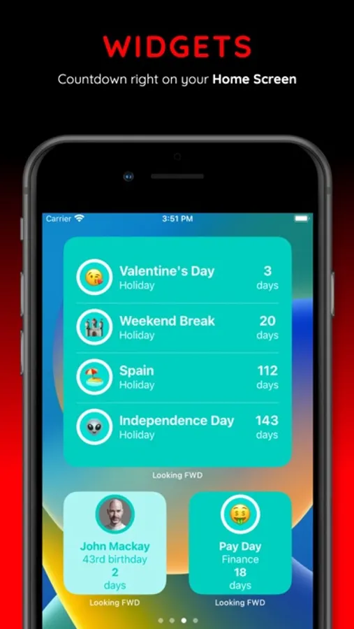 What are you looking forward to? Looking FWD helps you count down to important events in your life, such as:
