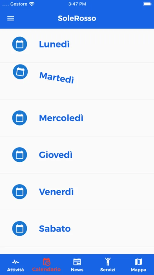 - il calendario con tutte le attività che si svolgono durante la settimana