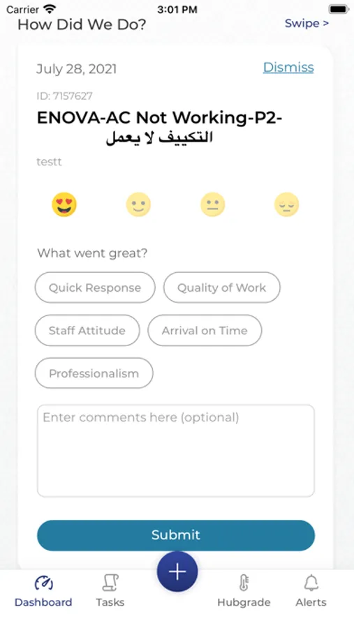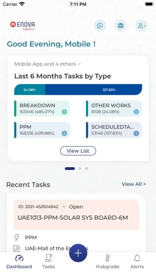 EVO mobile app is a one-stop shop for Smart Energy & Facilities Management Services. It provides transparent real-time data on energy and operational performance. Access your customized report breakdowns from everywhere and at any time. Raise tasks instantly, receive status updates, and rate the service received after task completion. View your facility performance through Business Intelligence reports BI and get live data indicators such as Live Temperature, Live Indoor Air Quality IAQ and Humidity from Hubgrade.