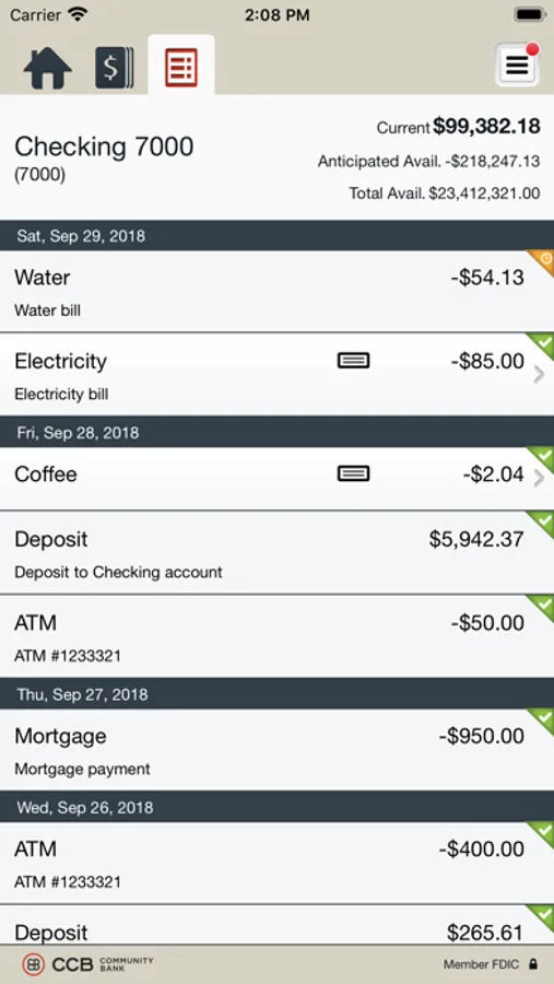 • View recent transactions, including check images
