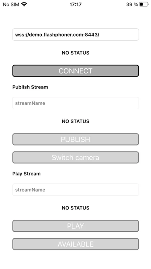 This application can be used to publish WebRTC video stream and play a video stream of any of the following types on Flashphoner Web Call Server: RTSP, WebRTC, RTMP and RTMFP.