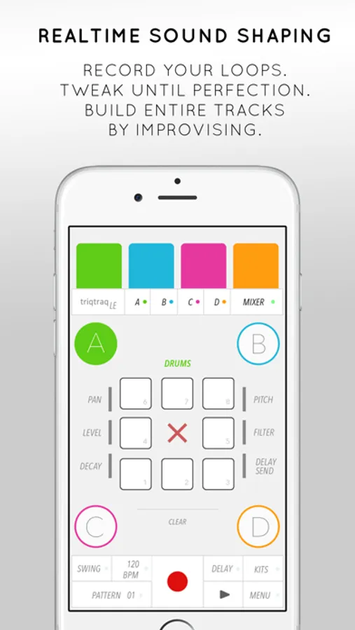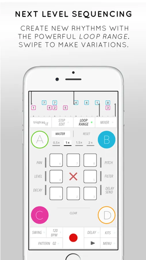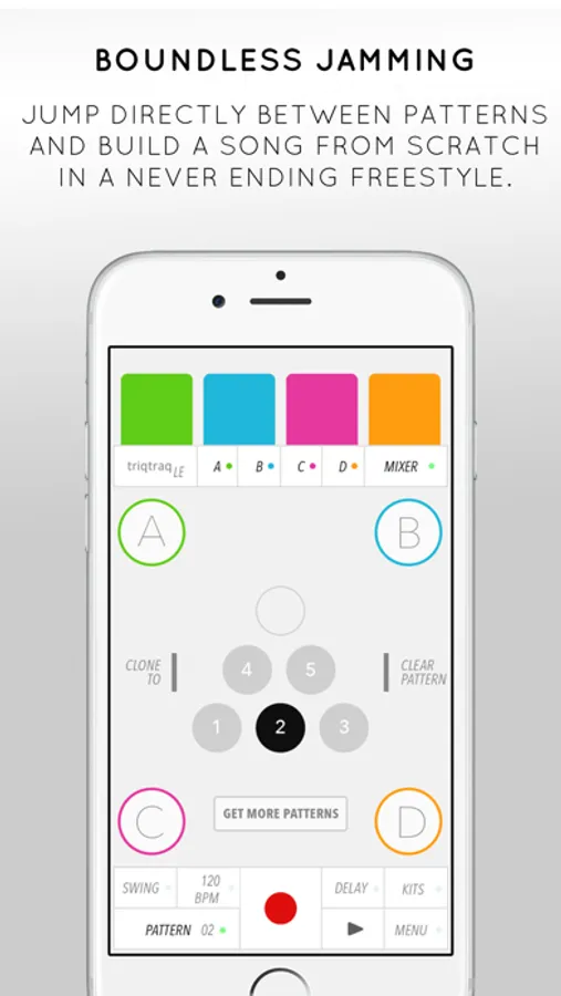 • Compose up to 6 patterns, and build entire songs by switching seamlessly between patterns.