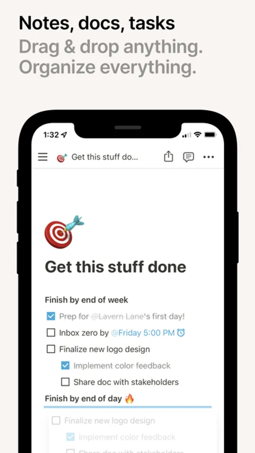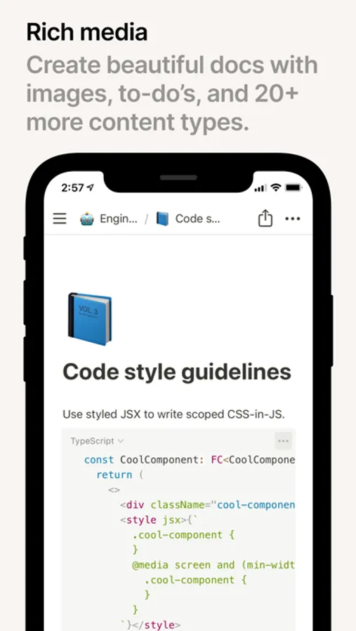 Create beautiful docs with images, to-do's, and 20+ more content types.