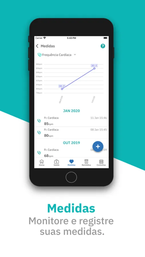 - Registre e acompanhe seus dados clínicos como Pressão Arterial, Glicose, Temperatura, Peso, IMC e muito mais;