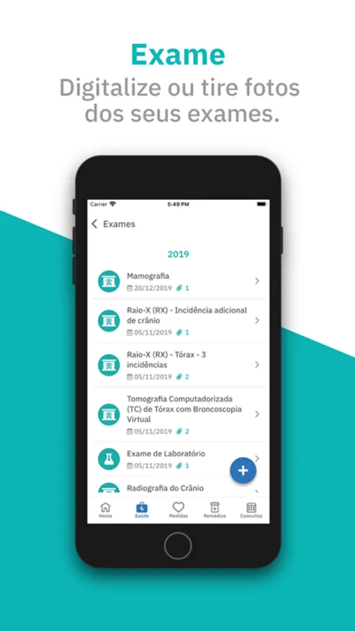- Compartilhe suas informações com sua equipe médica ou em uma Emergência: chega de perder prescrições e sacolas de exames;