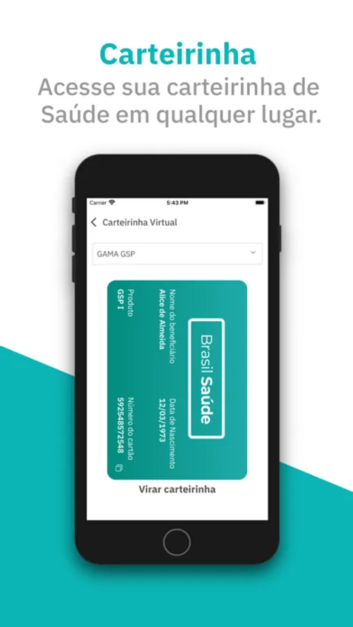 Acesse seu histórico de saúde, medicamentos e carteirinha do plano sempre que precisar.