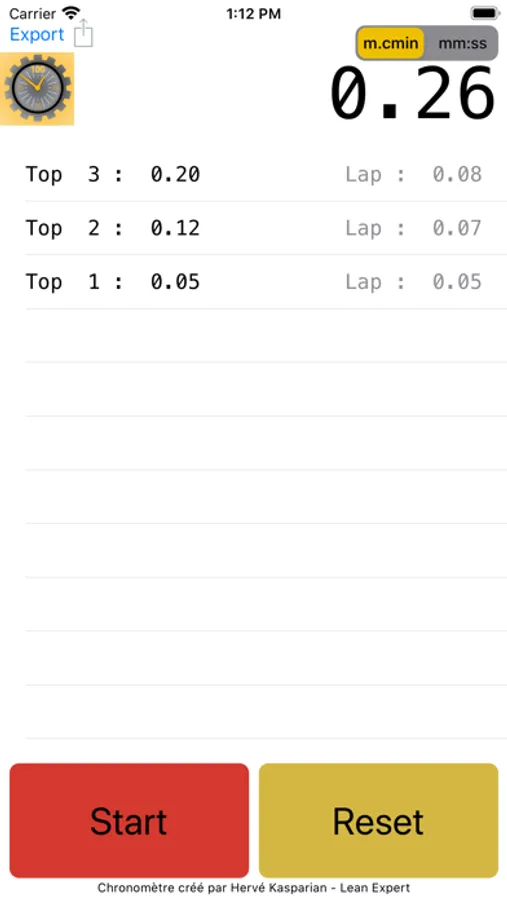 This stopwatch app is free and commercial-free. It allows you to easily measure times in hundredth of minutes.