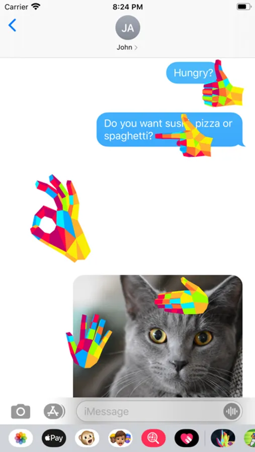 Next time someone sends you a message, show them That Hand. This vibrant set of over 40 stickers includes various hand gestures to express yourself. You can also combine with other stickers when you feel like they could use a hand.