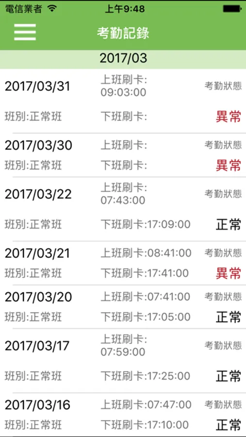 考勤紀錄:查詢個人每天刷卡考勤紀錄。