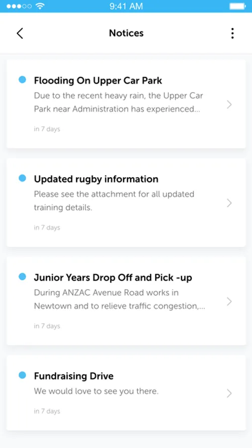 Notices: the Notices module provides Berala Public School with the ability to keep their community informed with important information, with push notifications for urgent school notices