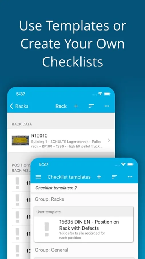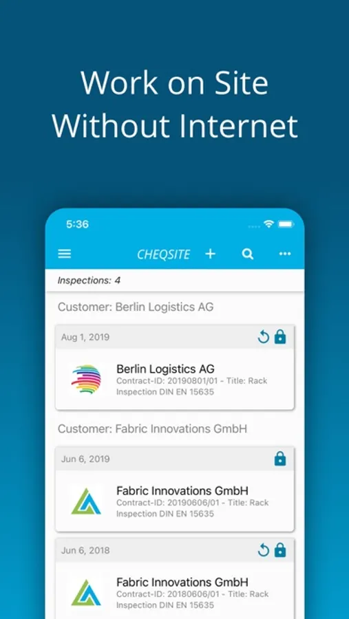 The CHEQSITE rack inspection application is a lean software solution for inspecting companies and self-employed professionals. With the app you inspect racking systems according to your national standard faster and more efficiently. You can use preinstalled templates for DIN EN 15635 or customize templates according to your specific needs as suggested by SN, SEMA, ANSI, RMI, etc.