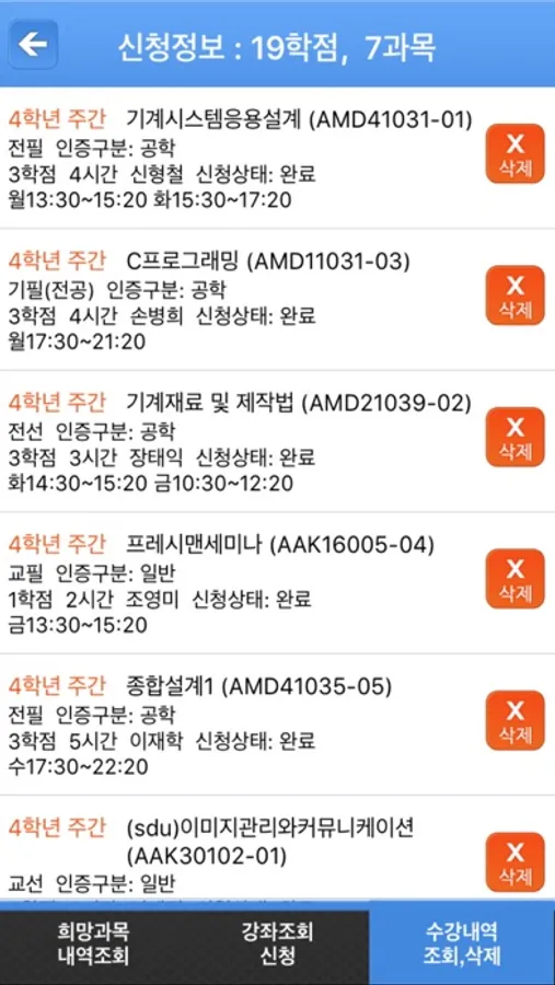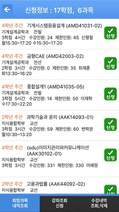 - 수강신청 내역조회