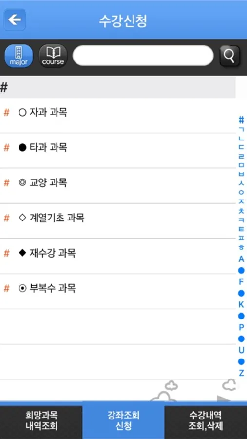 한국공학대학교 모바일 수강신청 입니다.