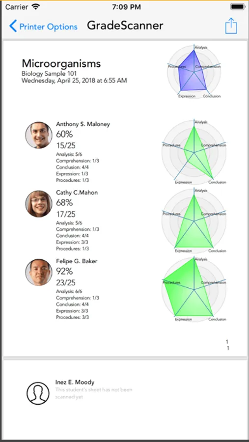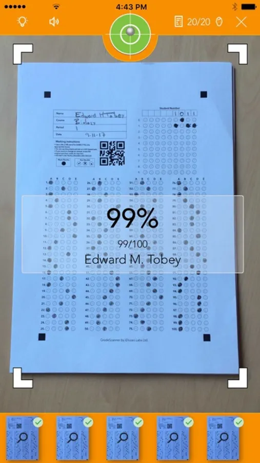 - View the score for each student in real time, as you scan.