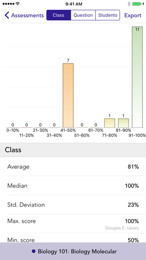 You may export your data to XLS,CSV, to iDoceo, sync with Google Classroom or review stats from the app.