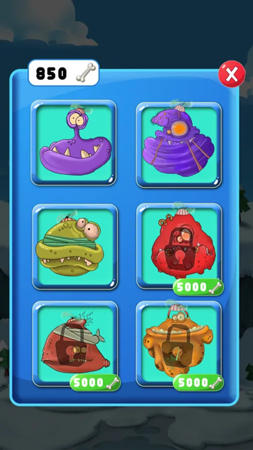 Gain points(bones) in various modes to unlock other creatures and different rooms or spend them on additional health.
