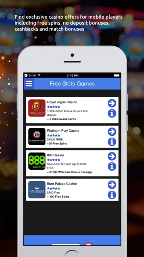 Use this app to find top online casinos for Canadian players with reviews and promotions where you can play video slots with free spins and no deposit bonuses.