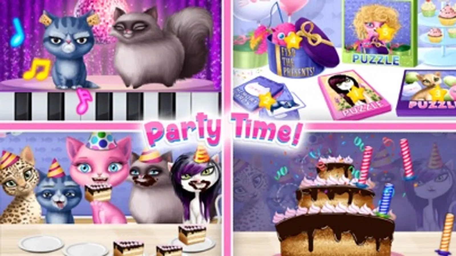 Play the best virtual pet care and cat hair salon games and get ready for new furry adventures! Help five soft and fluffy kitty cat friends prepare for a birthday celebration. Wash, cut, curl and color virtual cats' hair and fur. Design the most beautiful outfits and add stylish accessories for the purrfect look. Join the kittens, sing, eat the cake and have fun at the kitty birthday party. Open the gifts and find more games and surprises in Cat Hair Salon Birthday Party virtual pet care game!