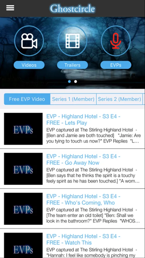 Hear 1000's of EVPs captured on our audio equipment, as well as extra content not seen on the videos.