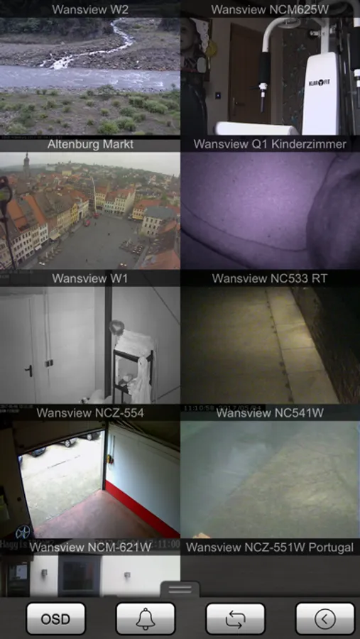 • MultiView, watch 4 or 8 cameras simultaneously (4 = landscape, 8 = portrait), by scrolling you can see up to 96 cameras, tab on the camera to switch to control mode