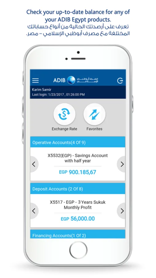 ADIB Egypt Mobile is the Mobile Banking service offered for individual customers of Abu Dhabi Islamic Bank – Egypt. It offers a secure, simple, fast and convenient banking experience through your smart phone or tablet.
