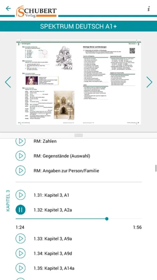 SCHUBERT-Audio speelt alle audio-gegevens van onze leerboeken en de bijbehorende digitale aanvullingsmaterialen gemakkelijk op mobiele apparaten. Momenteel zijn audio-gegevens voor SPEKTRUM DEUTSCH A1⁺, SPEKTRUM DEUTSCH A2⁺, SPEKTRUM DEUTSCH B1⁺, SPEKTRUM DEUTSCH B2, Begegnungen DaF A1⁺, Begegnungen DaF A2⁺, Begegnungen DaF B1⁺, Erkundungen B2, Erkundungen C1, Erkundungen C2, A-Grammatik, Geschäftliche Begegnungen A2⁺, Geschäftliche Begegnungen B1⁺, Sag Hallo!, Schulzeit für Eltern beschikbaar, meer zitten in de pijplijn.