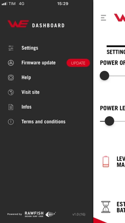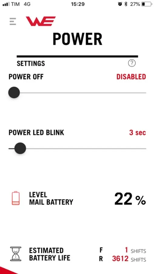Here you can control some parameter that allow you to optimize your battery lifetime, you will also be able to check the battery level and estimated shifts remaining