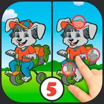 Spot five differences between two images! This is a classic game for kids. Once you find the difference, tap the area on the screen to spot the difference between two pictures. Spot the difference is a great way to exercise the brain for kids and improve their visual observation skills!