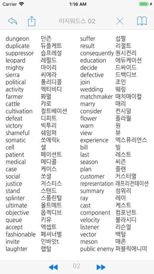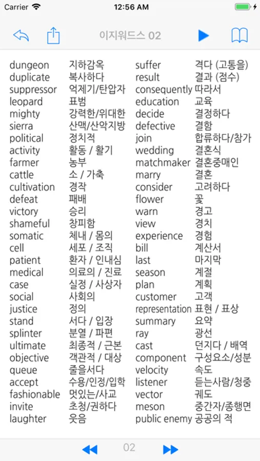 영어단어를 쉽고 빠르게 암기 하실 수 있습니다~ 하루에 한 장 60개의 단어를 암기해보세요~ 무한반복 재생으로 주무실때 눈감고도 단어암기가 쉬워저요~ 미국 본토 발음과 3,360 개가 넘는 단어들~