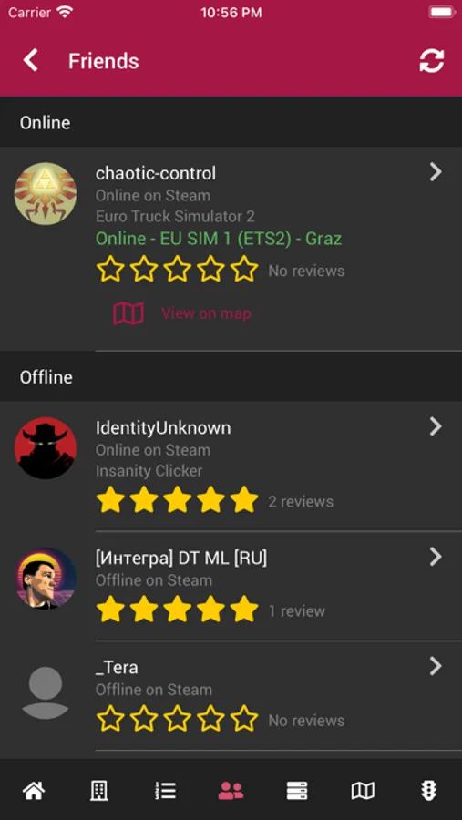 - Friends: Watch your Steam friends when they are online and follow them on the map