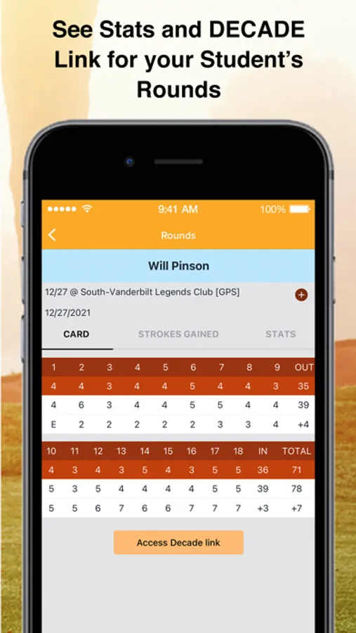 Through the DECADE app, you get access to the proven and revolutionary DECADE Strategy. Tour Level Course Management and Statistical Profiling at your fingertips, anywhere. Learn how tournament winners manage their game by optimizing course strategy.