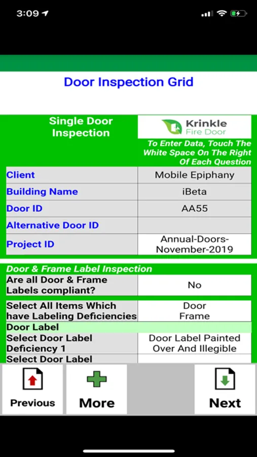 Krinkle Fire Door is a smart mobile app that guides inspectors to easily adhere to NFPA 80 standards, speed up work, and automate fire door/damper reporting. The system tracks customers, buildings, fire doors, fire door frames, and fire dampers, as well as all associated inspections. An additional module even tracks the repair process associated with defects found in the inspections, including parts and labor costing.
