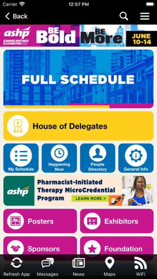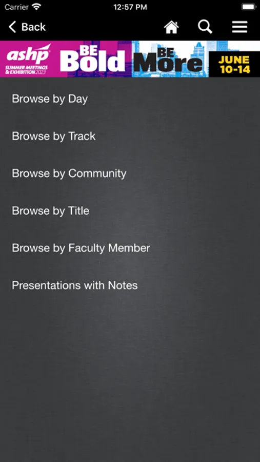 The ASHP LIVE! mobile application allows you to browse through presentations, presenter, and exhibitor details, as well as other resources from select ASHP events.