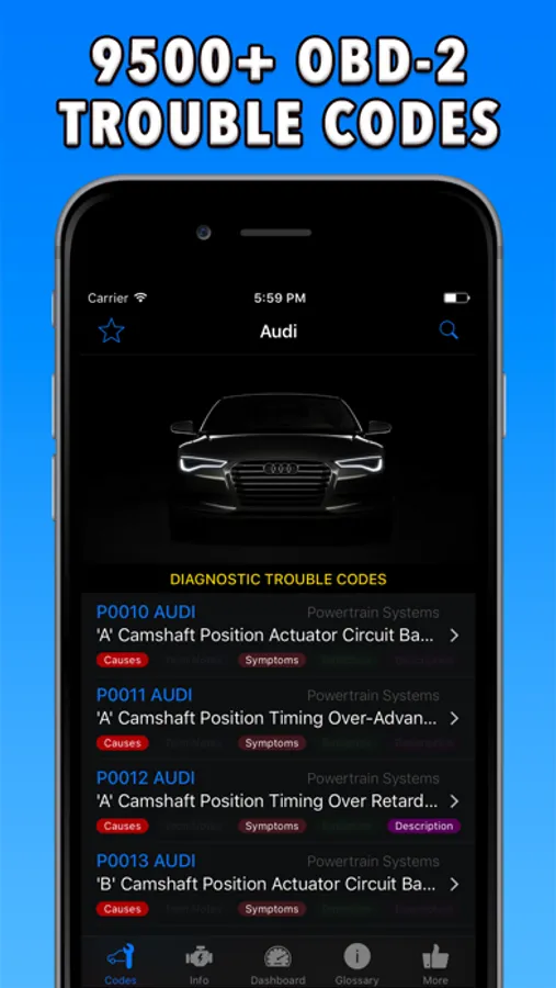 7600+ OBD-2 Diagnostic Trouble Codes special for AUDI: