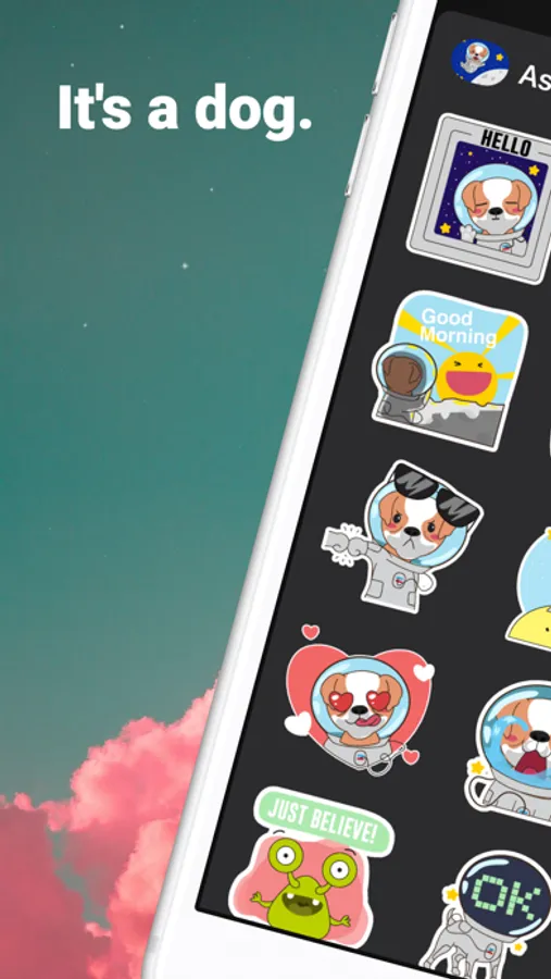 Get far out and send Astro Dog Stickers instead of typing boring old text messages.
