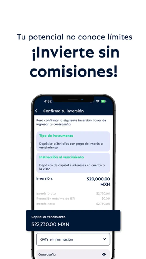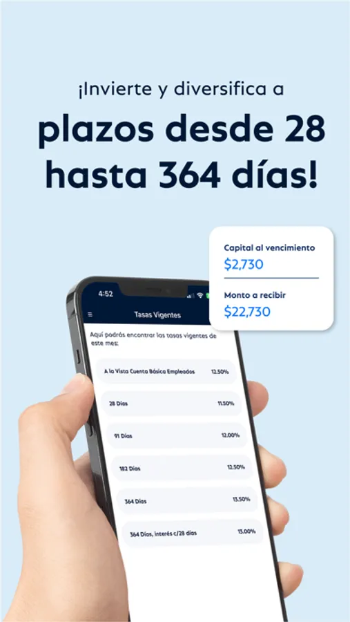 - Invertir a plazos de 28, 91, 182 y 364 días.