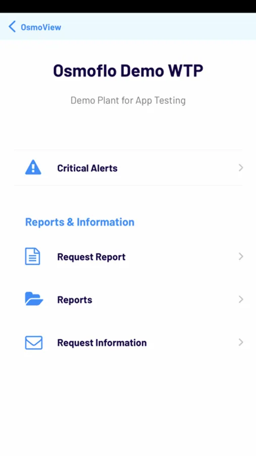 Easily access plant performance information, reports and communicate with Osmoflo’s 24x7 Control Centre, all within the OsmoView app.