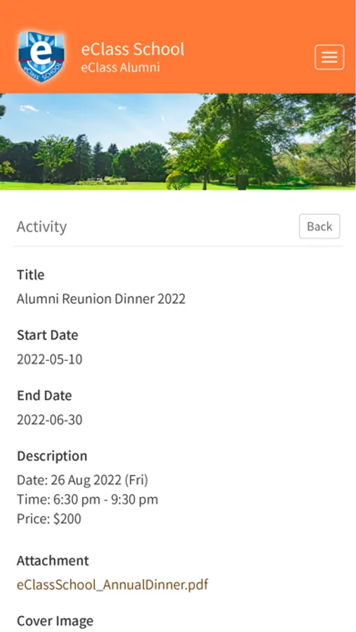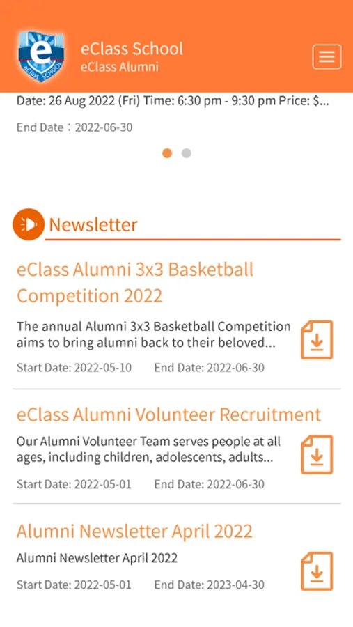 eAlumni is a mobile application that alumni can be able to access information from school includes