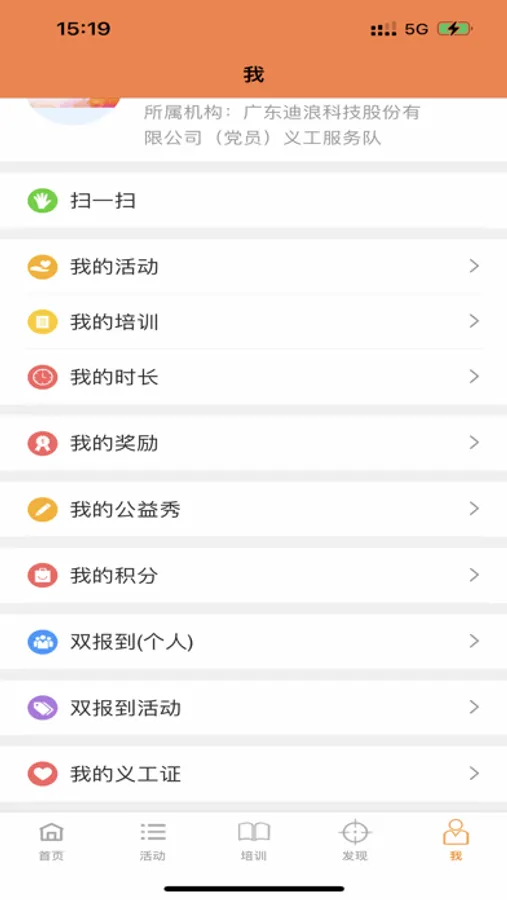 义工用户可以查看义工活动、义工培训、志愿快讯、志愿博客、公益联盟等信息,并能在个人中心获取和设置自己的义工信息。除此以外,义工参与活动的时候可以使用APP的扫一扫功能进行活动签到和签退。