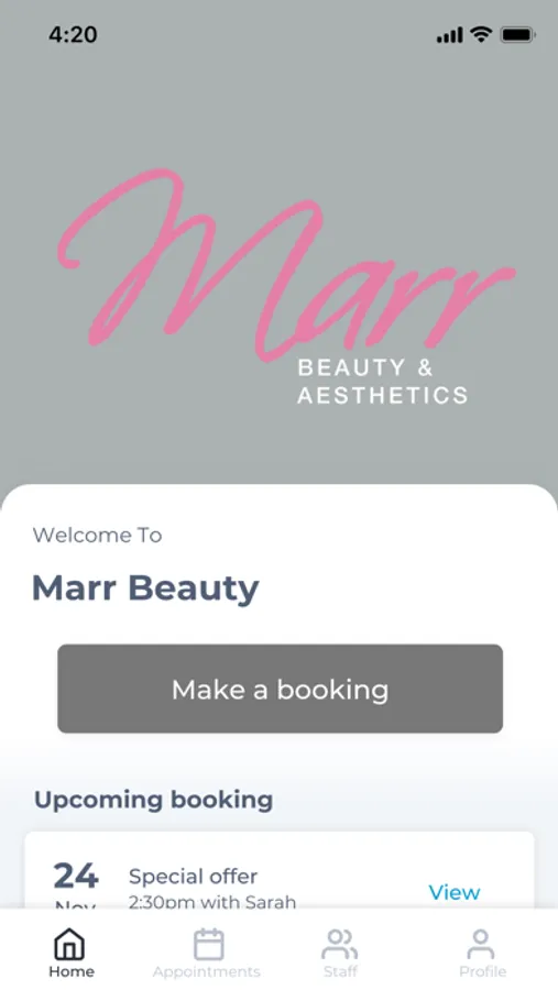 The Marr Beauty app makes booking your appointments and managing your loyalty points even easier. You're just a few taps away from feeling good and looking great!