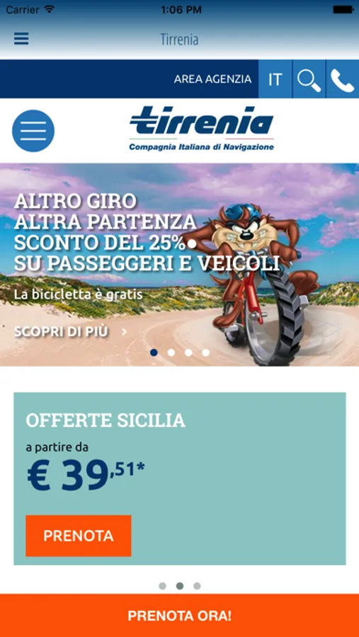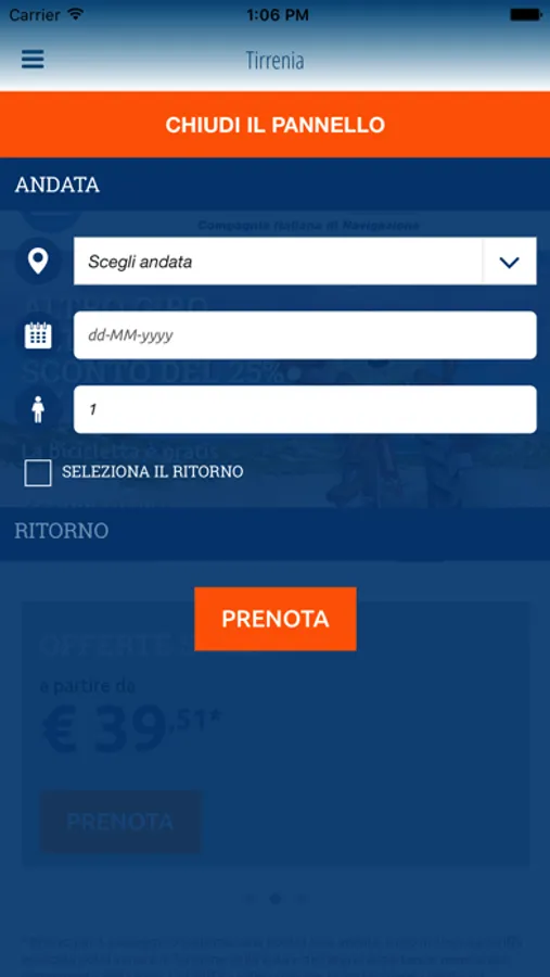 Potrai prenotare il tuo viaggio in traghetto per la Sardegna, la Corsica o l'Isola d'Elba, comodamente, usando il tuo iPhone.