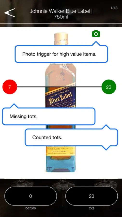 High value products (Johnnie Walker Blue) will automatically force the stock taker to take a photo to verify his level.