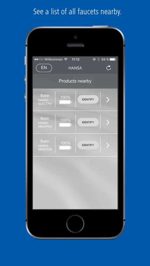 IDENTIFY fittings with Bluetooth® sensor within 10 meter radius